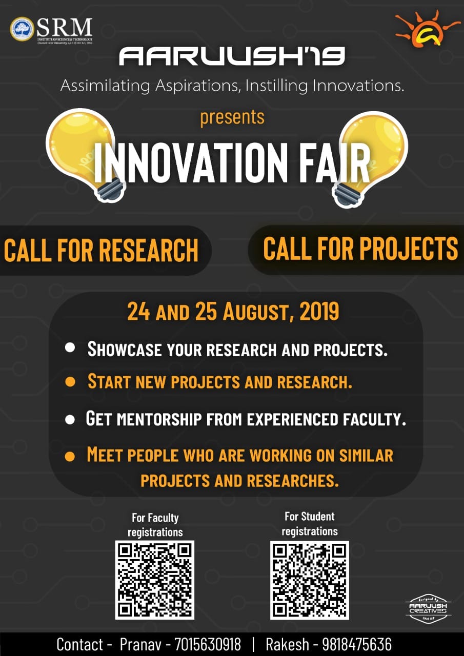 Aaruush aims to provide everyone with the platform where they can deliberate with experienced professionals in the field to gain valuable insight with the Aaruush Innovation Fair. Call for Research will be such a platform where students can gain knowledge on valuable research in their field from professionals. Call for Projects will be a collaborative initiative that shall bring together students, faculties and technical teams united by a common vision. The initiative will also be a recruitment hub for new innovative projects. If you have one such innovative idea that you believe will be the next biggest technology in tomorrow’s world, join us for the Aaruush Innovation Fair on the 24th and 25th of August and be the next Tony Stark.