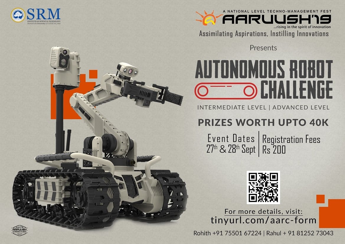 HEY HUMAN! Yes, the one reading this! You've heard about us in songs like Robot Rock by Daft punk, seen us in movies like Terminator and Rajnikanth's Enthiran. But it's time for you to see us in real life. We're coming to your campus for a fierce Autonomous Robotics Challenge. Join us as Team Aaruush presents to you a plethora of innovations. We love challenges. We might or might not take over the world, but we're definitely going to take a special place in your heart. 01010010 01100101 01100111 01101001 01110011 01110100 01100101 01110010 00100000 01001110 01101111 01110111 00100001 (Don't Google search it. This means REGISTER NOW! In your human tongue, of course)